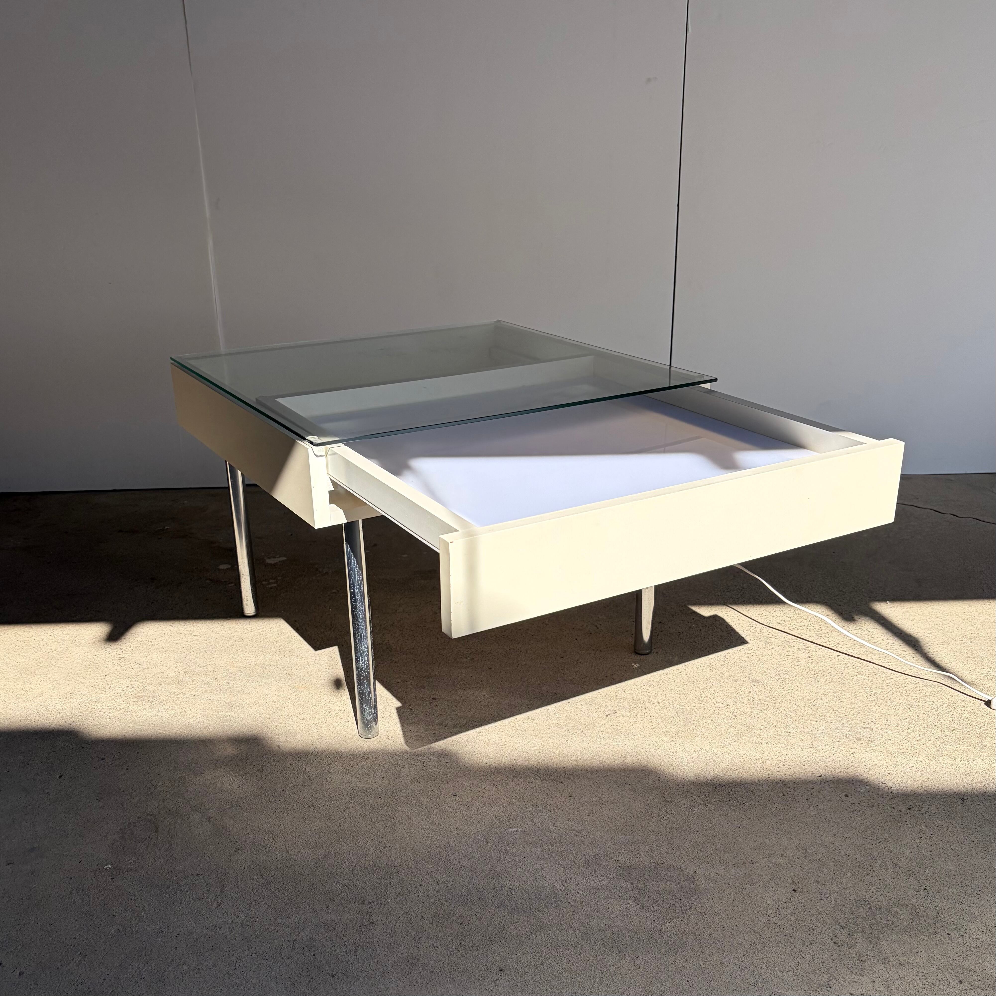 引き出しの中に蛍光灯が入っているので照明機能のついたサイドテーブルです。